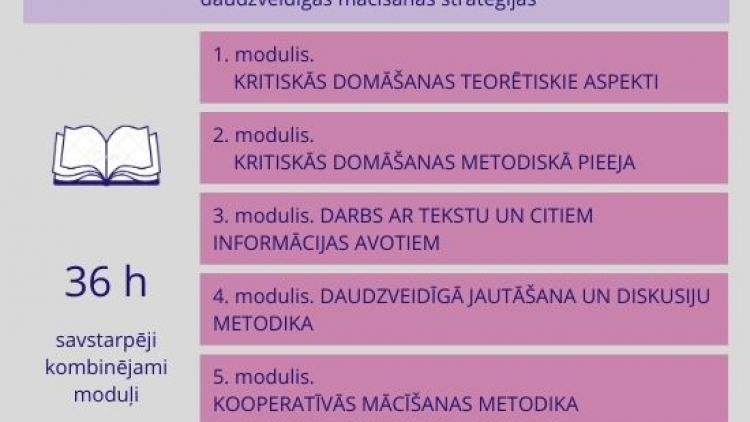 - Kursi ir lieliska iespēja stiprināt savu kapacitāti kritiskās domāšanas metodikā. Tiek iegūtas noderīgas idejas, kā mācīt kritiski vērtēt dažādus avotus, apkopot informāciju, attīstīt skolēnu radošumu. Ļoti noderīgi uzzināt, kā ar skolēniem runāt par vērtībām un ieinteresēt sekot sabiedrībā aktuālām norisēm.